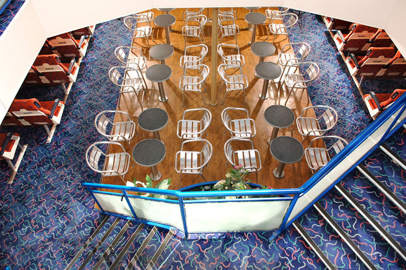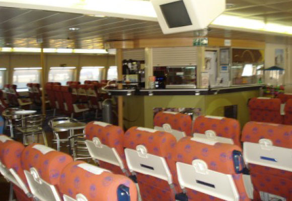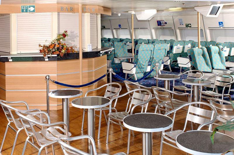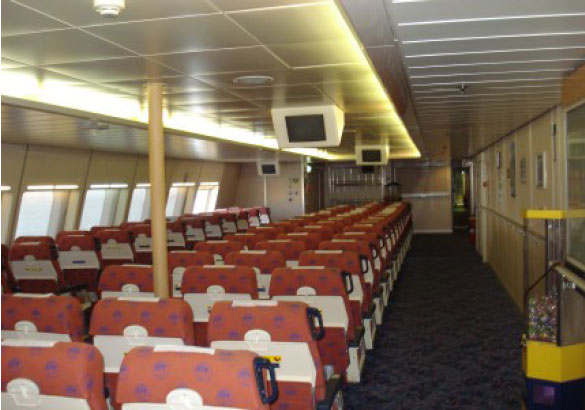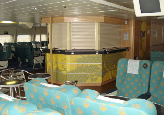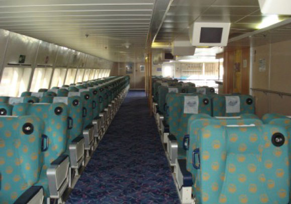 Fully air-conditioned, Economy and First class Pullman seats, Economy and First class bar, 52 satellite televisions, Headsets for music at every seat, Passenger elevator, Escalator staircases, Reception, Jewellery safekeeping, Telephone, WC for disabled.