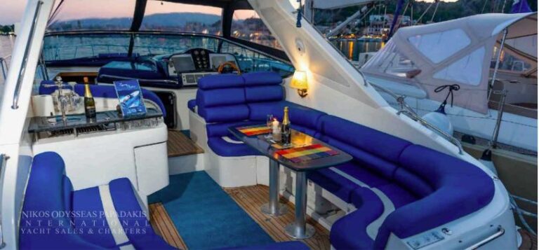 Sealine 48 motor yacht for sale, built in 2002 and powered by twin VOLVO PENTA 480 TAMD 74 engines, offering excellent performance and reliability. Featuring two spacious cabins, two bathrooms, and elegant interior spaces, this well-maintained yacht combines comfort, style, and seaworthiness for unforgettable cruising experiences. Turn key condition.